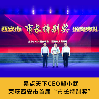 颁奖典礼上,陕西省委常委、西安市委书记王浩和西安市市长李明远为易点天下网络科技股份有限公司(以下简称“易点天下”)CEO邹小武等20人颁发了“市长特别奖”奖杯和证书。一同获奖的还有比亚迪股份有限公司董事长兼总裁王传福、大唐不夜城管理运营团队、航天推进技术研究院团队等。